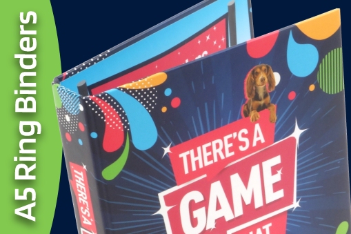 A5 ring binders available in a fantastic range of print, materials and finishes. Whether you are looking for fantastic print, an everyday binder or an easy clean option. Our range of stationery has something to suit everyone.