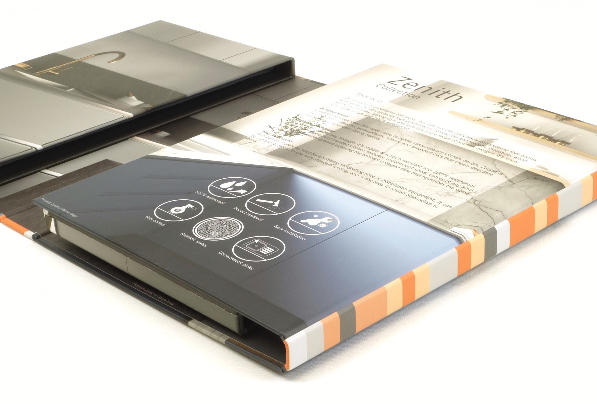 Perfect for swatch books, sales kits, or product literature, our multi-cover folders (available in 4, 6 or 8 page designs) provide an elegant and effective way to present your content. Choose from single, double, or triple-spine configurations tailored to your format and use.
