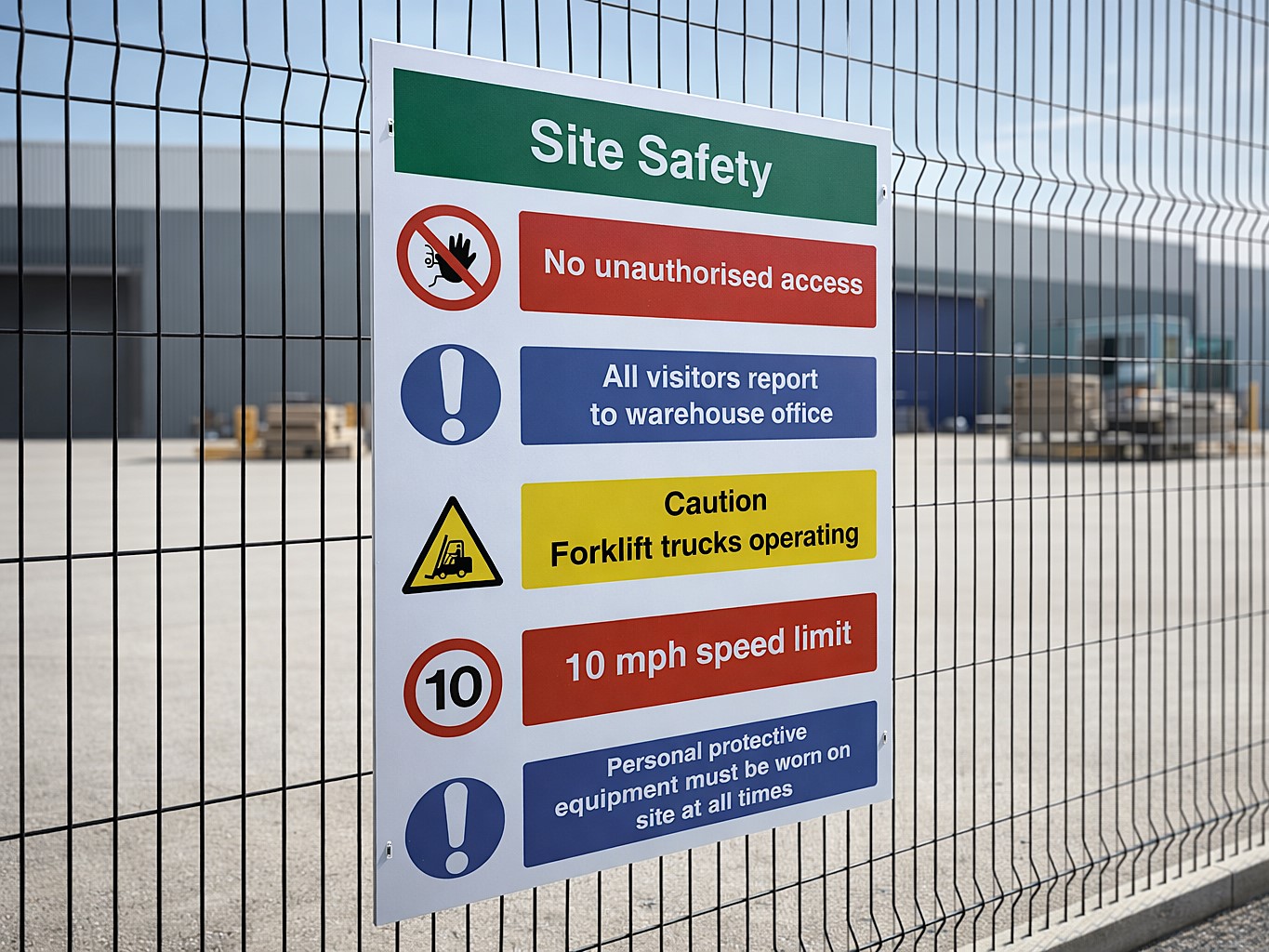 - Mandatory, warning and hazard signage